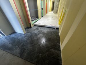 エントランスの下地を作り、後日、下が乾いてから玄関からエントランスのタイル貼りにも取り掛かっていきます。